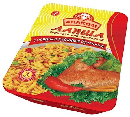 Zutaten:Nudeln (Weizenmehl, pflanzliches Öl, Kartoffelstärke, Speisesalz, Eipulver, Farbstoff Beta-Carotin), Suppengrundlage (Speisesalz, Maltodextrin, Hühnerfett, Hühnerfleischpulver, Geschmacksverstärker: E621, E627, E631, getrocknetes Gemüse (Knoblauch, Zwiebel, Paprika), Aroma, Gewürze (Paprika, Ingwer, schwarzer Pfeffer, Kurkuma)), getrocknetes Gemüse mit Sojaextrudat (Mais, Erbsen, Karotten, Sojaextrudat, Schnittlauch).