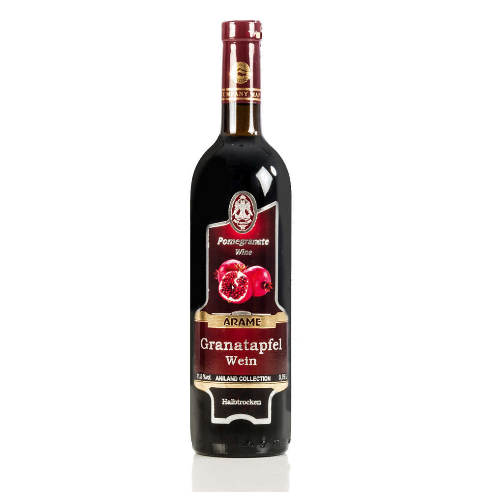 Produktinformationen "Arame Granatapfelwein halbtrocken - 0,75 lUNFILTRIERT / Enthält Granatapfel SedimentErleben Sie diesen außergewöhnlichen und in Europa nicht sehr typischen Granatapfelwein. Dieser halbtrockene Rotwein wird aus den besten Granatäpfeln Armeniens hergestellt.Der Wein passt ideal zu Salat, Käse und Früchten.Frucht: GranatapfelInhalt: 0,75 LiterAlkoholgehalt: 11,5 % vol.Kategorie: # Halbtrockener GranatapfelweinLagertemperatur: 2°C ~ 8°CTrinktemperatur: 14°C ~ 15°CEnthält: SulfiteRegion / Weingut: ArmavirUrsprungsland: ArmenienHersteller: MAP CJS Company village LenughiWir verkaufen keinen Alkohol an Jugendliche unter 18 Jahre!Nach erfolgtem Kauf senden Sie uns bitte ein Foto oder eine Kopie Ihres Personalausweises/Passe.Bei weiteren Bestellungen müssen die Daten dann nicht mehr neu zugeschickt werden!Ohne Vorlage eines Altersnachweises ist ein Versand nicht möglich!Das Bild/die Kopie senden Sie bitteper eMail an: info@intermarkt24.deoder per Fax an: +4930 55493133Nach Erhalt des Altersnachweises wird die Sendung umgehend per Einschreiben/Eigenhändig verschickt!