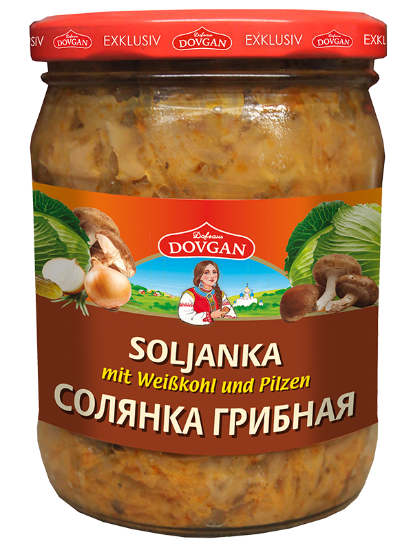 Состав: 51% белокочанная капуста, 16% соленые грибы шиитаке (грибы шиитаке, соль), 14% маринованные огурцы (огурец, соль, укроп, хрен, чеснок), рапсовое масло, 6% лук, концентрированный томатный концентрат, сахар, соль, подкислитель: лимонная кислота , Специи.