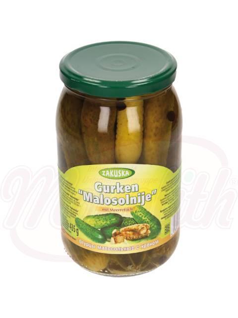 Zutaten: Gurken, Säuerungsmittel: Essigsäure, Zucker, Salz, Meerrettich, Dill, Gewürze.