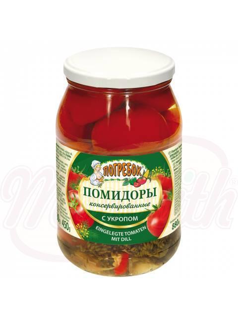 Zutaten: Tomaten, Zucker, Salz, Dill 1,5%, Sellerieblätter, Gewürze, Säuerungsmittel: Zitronensäure.