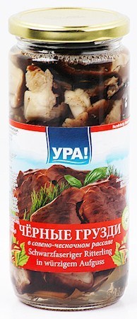 Шиитаке, вода, чеснок, лук, перец, укроп, специи (лавровый лист, гвоздика, черный перец), сахар, подкислители (уксусная кислота, лимонная кислота).