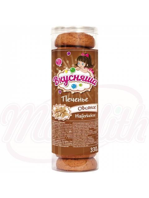 Zucker, Margarine (Sonnenblumenöl teilweise gehärtet, Sonnenblumenöl, Palmöl, Palmolein, Emulgator Sojalecithine, E471, E475, Speisesalz, Konservierungsstoff Sorbinsäure, Säuerungsmittel Citronensäure, Aroma, Farbstoff Beta Carotin), Hafermehl 16%, Glukosesirup, Apfelpüree, Backtriebmittel: E 500, Salz, Zimt gemahlen.