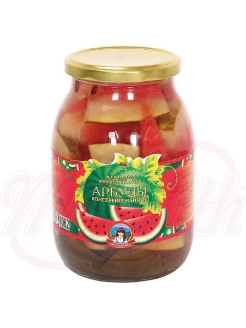 Состав: арбузы, сахар, соль, подкислитель: лимонная кислота, виноградный лист, йодат калия.