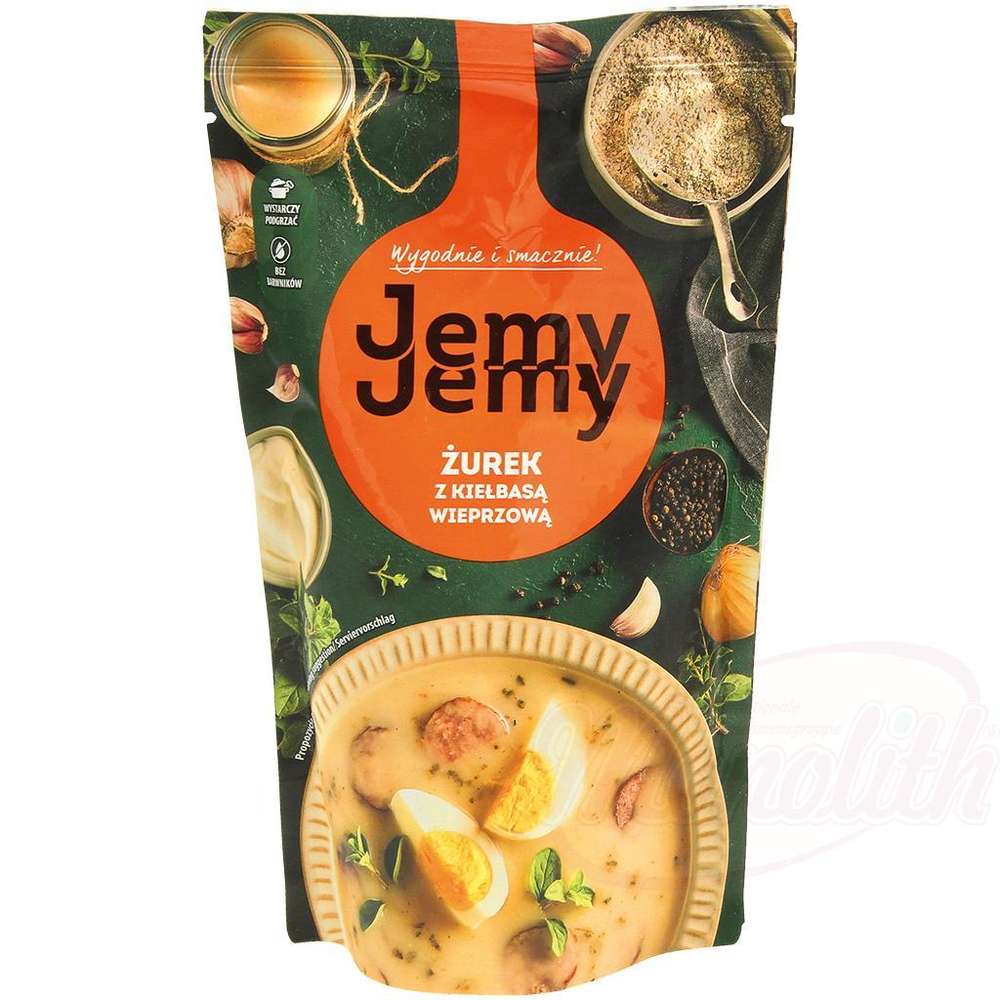 Ингредиенты: Вода, сметана 20% (вода, ржаная мука, чеснок), копченая вареная колбаса 10% (свинина, соль, модифицированный крахмал, специи, сахар, дым), сметана 2%, модифицированный крахмал, пшеничная мука, соль, копченое сало (бекон, дым), Жареный лук 0,4% (лук, рапсовое масло, пшеничная мука, соль), чеснок, рапсовое масло, майоран, перец, дрожжевой экстракт, антиоксидант Е301.