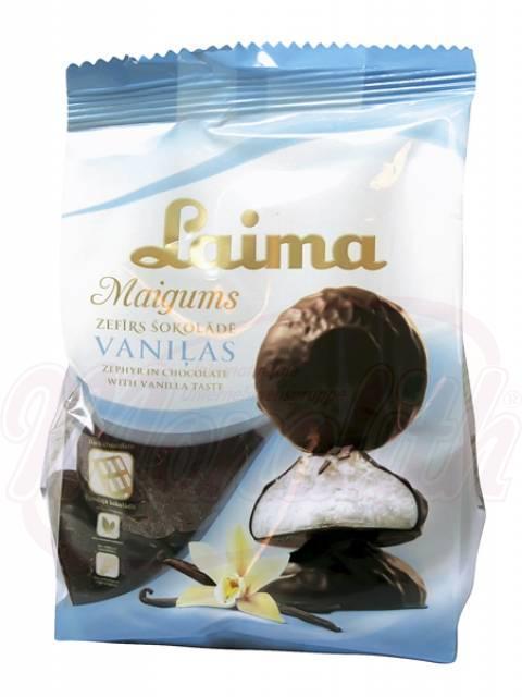 Zutaten: Glukosesirup(mit Konservierungsstoff E220), Schokolade(30%) (Zucker, Kakaomasse, Kakaobutter, Pflanzenfett, Emulgator E442, Aroma), Zucker, Wasser, Eiklarpulver (Trennmittel E 1505), Geliermittel (Agar-Agar), Säureregulator E 331, Aroma (Vanillin), Stabilisator E407.