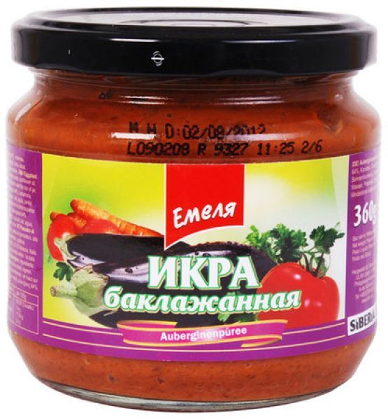 Состав: Баклажаны 64%, морковь, томатная паста, масло подсолнечное, лук, сахар, соль, петрушка, подкислитель Глюконо-дельта-лактон, перец.