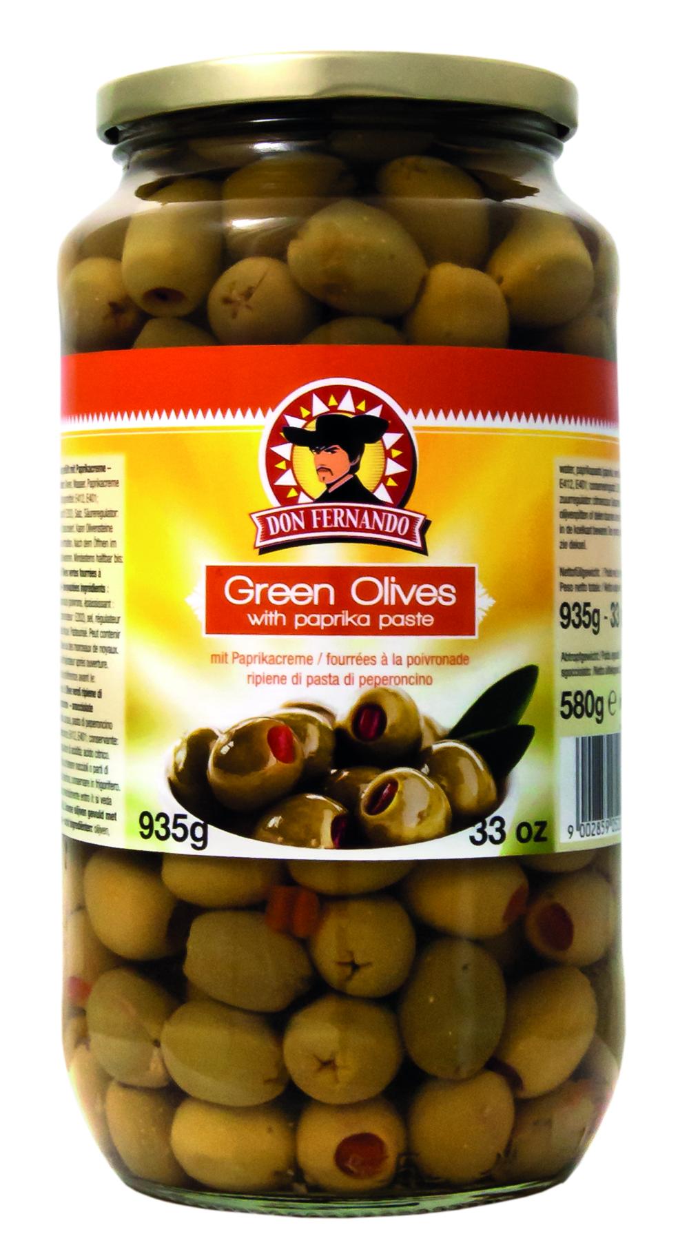 Оливки зеленые, фаршированные кремом из паприки 920г