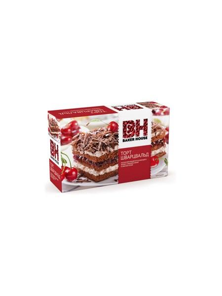 мука пшеничная, глюкозный сироп, сахар, продукты яичные, заменитель молочного жира (рафинированные дезодорированные масла в натуральном и модифицированном виде (пальмовое масло, подсолнечное масло), эмульгаторы, антиокислители, вода, вишня замороженная, какао-порошок, влагоудерживающий агент (глицерин), эмульгатор, разрыхлитель, крахмал кукурузный, консервант (пропионат натрия, сорбиновая кислота), регулятор кислотности (лимонная кислота, молочная кислота), соль, загустители (ксантановая камедь, альгинат натрия), ароматизатор.